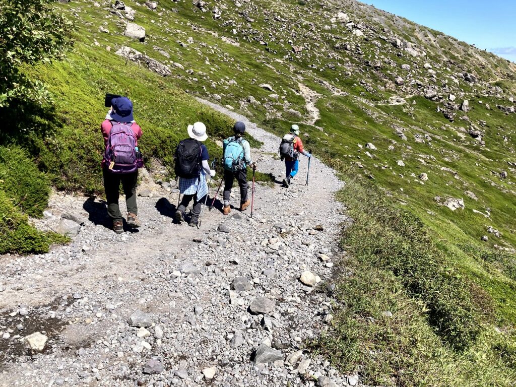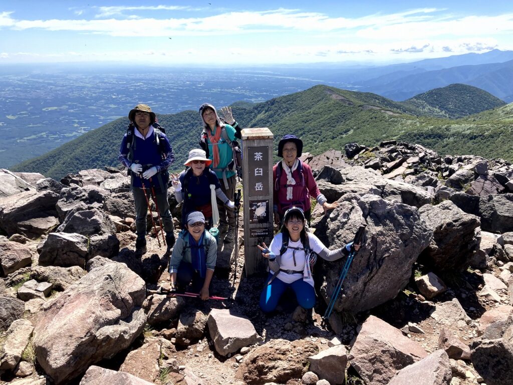 城山5:00=宇都宮IC=那須IC=峠の茶屋P6:10~6:25…登山口6:30…峰の茶屋7:40~7:50…牛ヶ首8:25~8:30…日の出平8:50~8:55…南月山9:20~9:30…牛ヶ首10:30…茶臼岳12:00~12:35…硫黄高山跡13:05…峠の茶屋P14:15~14:30=友愛の森=城山16:30