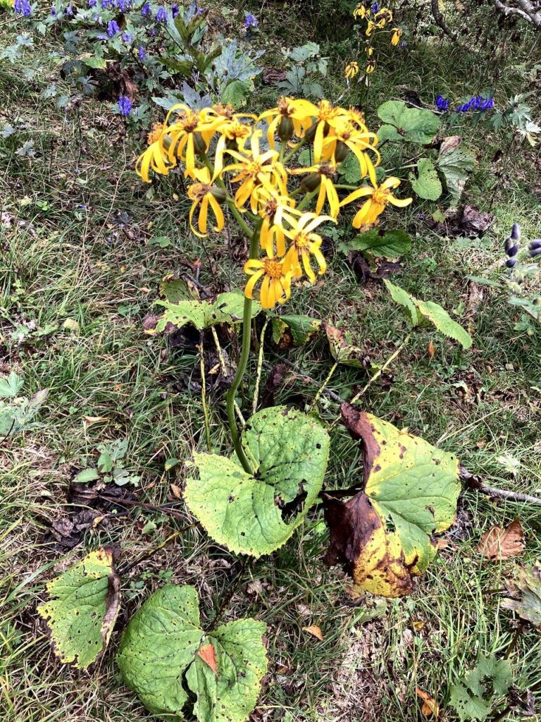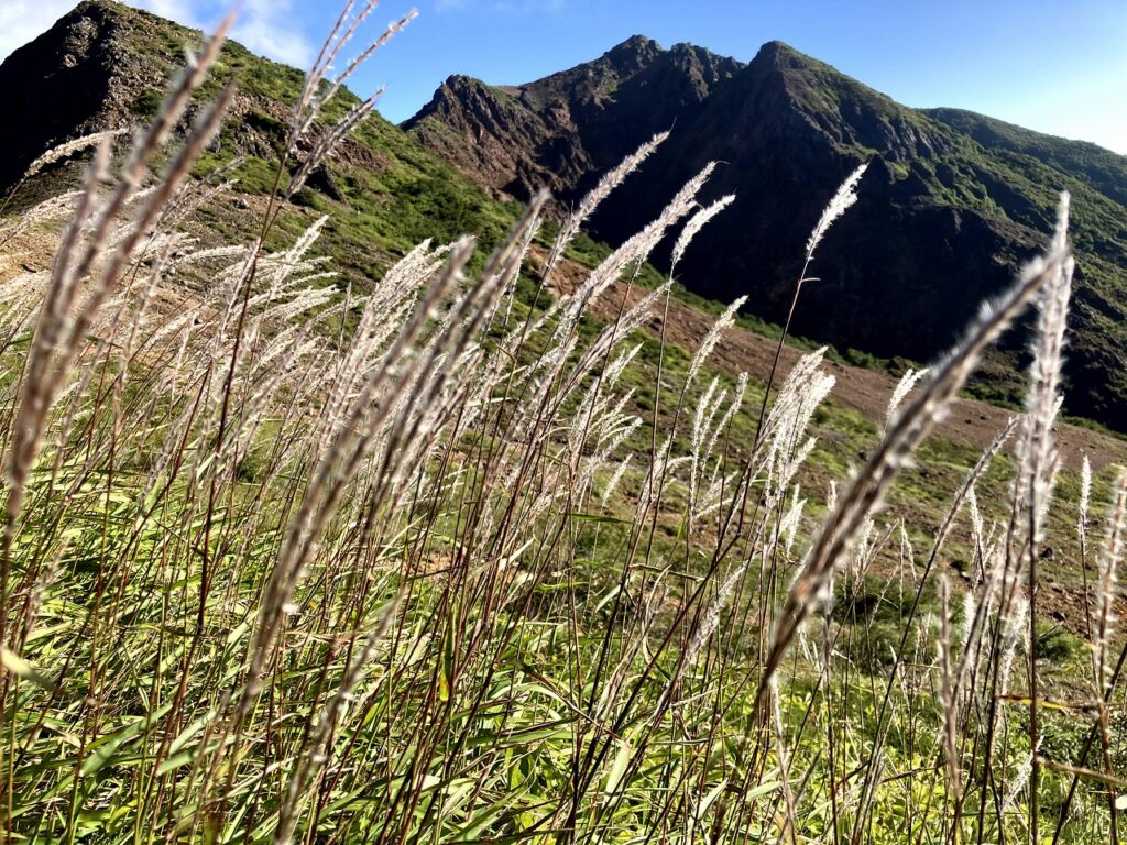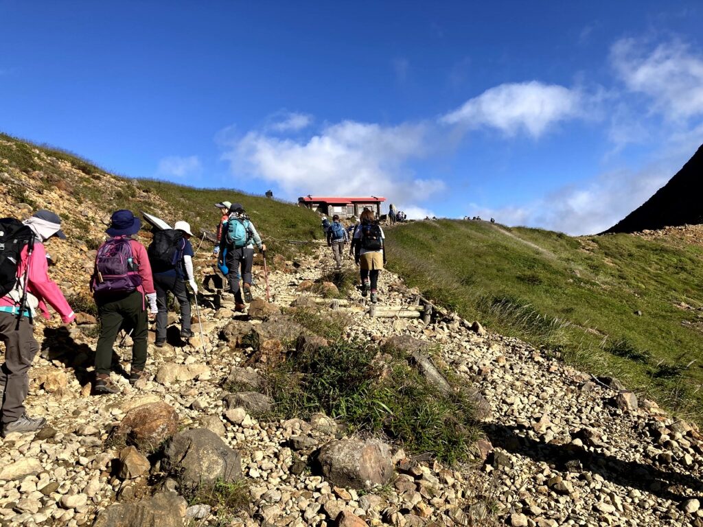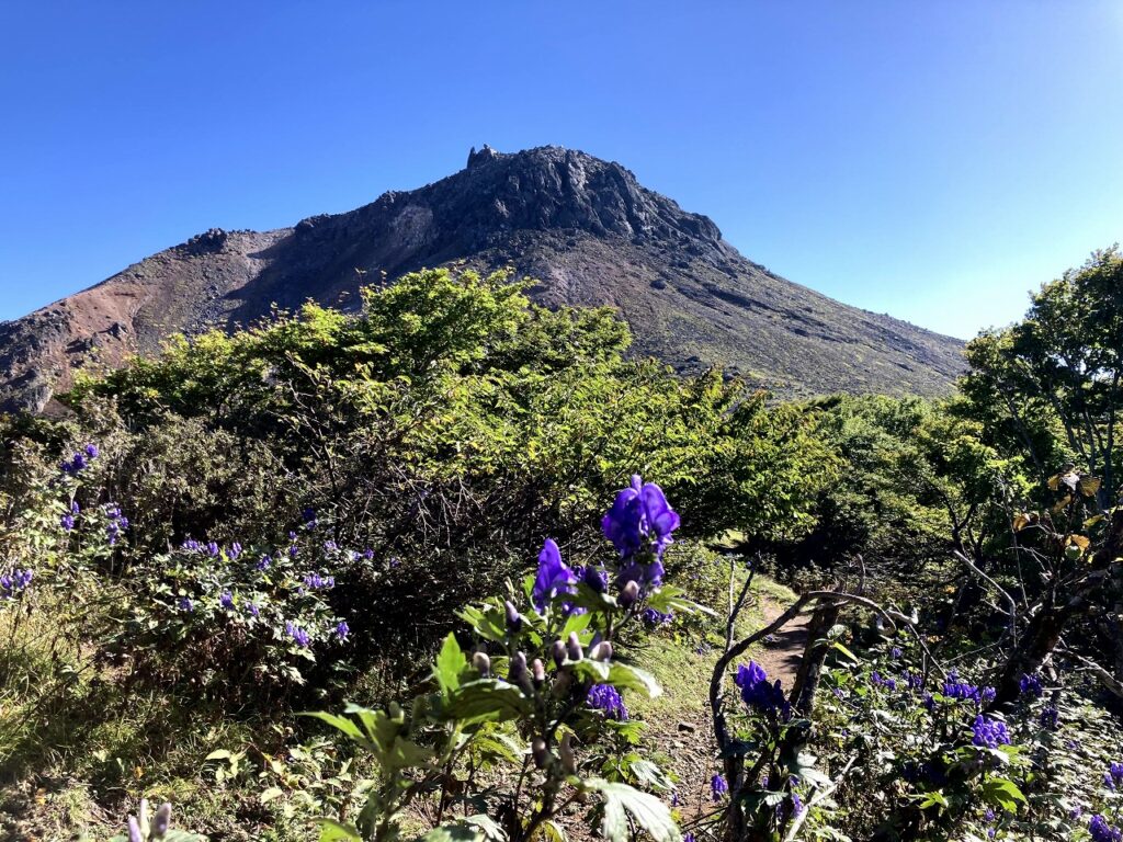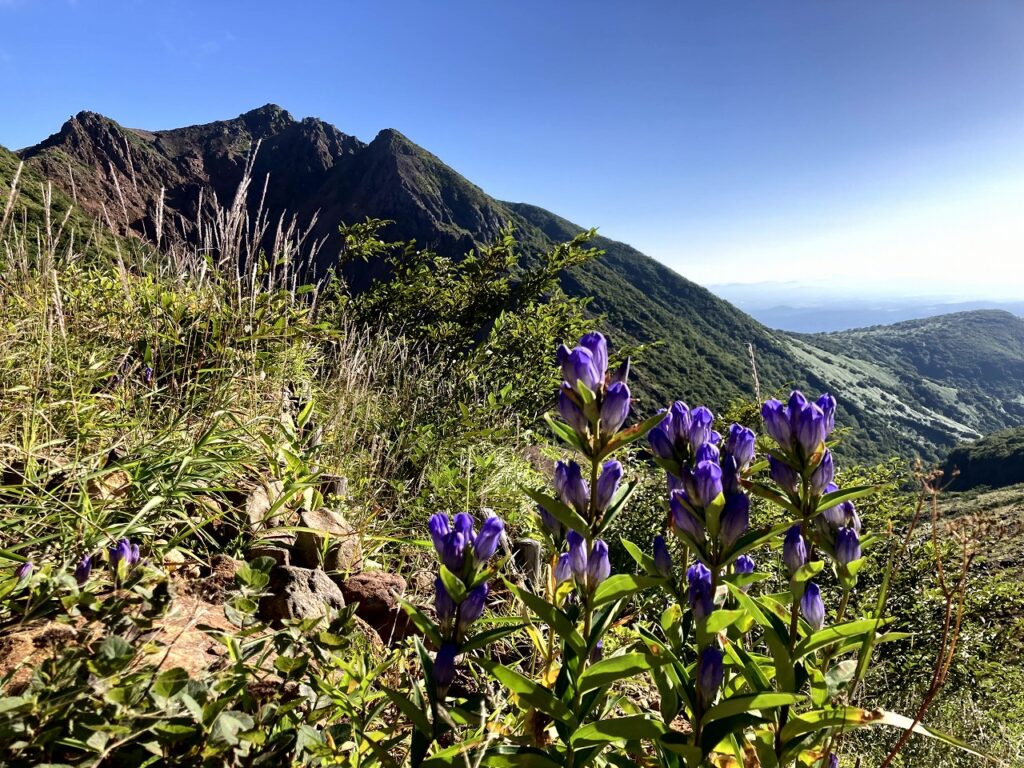 ◆城山を定刻に出発。台風一過の快晴のもとスタートする。階段やザレ場の上りで流れる汗を吹く風が心地よく冷ましてくれる。空気が澄んでいるので山々の稜線もきれいに見渡せた。ミヤマダイモンジソウ、イワインチン、ヘビノボラズ、リンドウ、トウゲブキなどのお花もあり、特にトリカブトは群落で圧巻でした。おいしい差し入れで一日元気に歩けました。ありがとうございました。