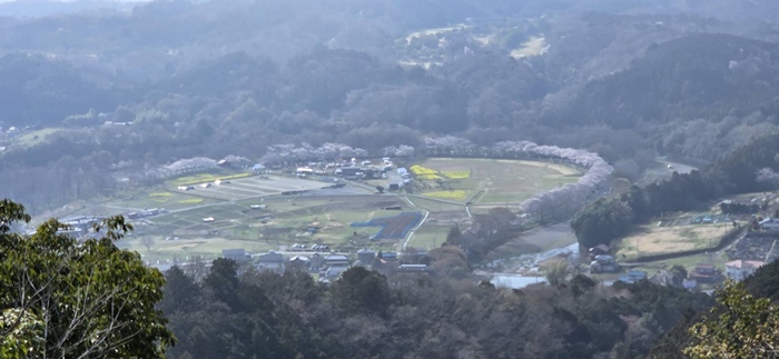 巾着田方面を望みます。菜の花と桜の競演です